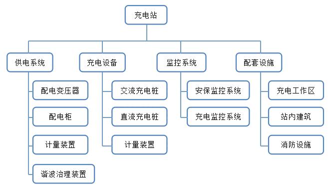 電動汽車充電站包括供電系統、充電設備監測系統和相應的配套設施。完整充電站的總體結構如下: