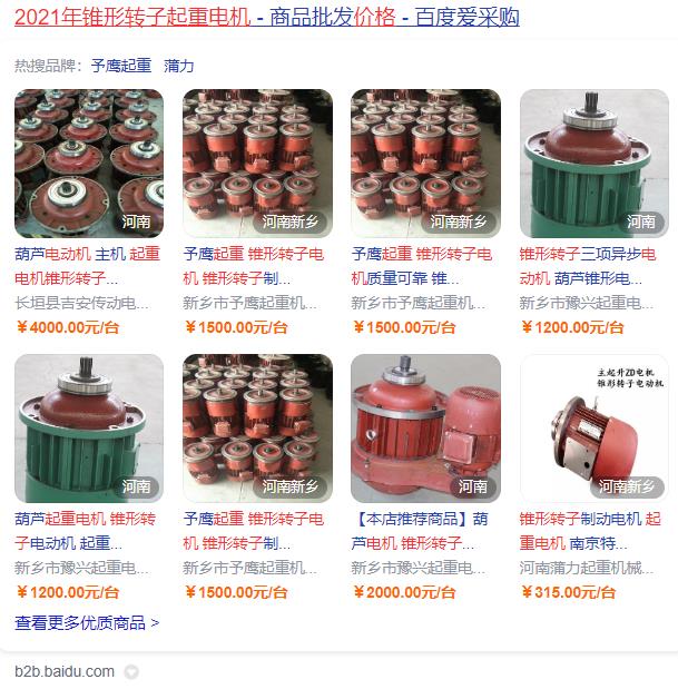 (百度愛采購搜索得出2021年錐形轉子起重電機價格)