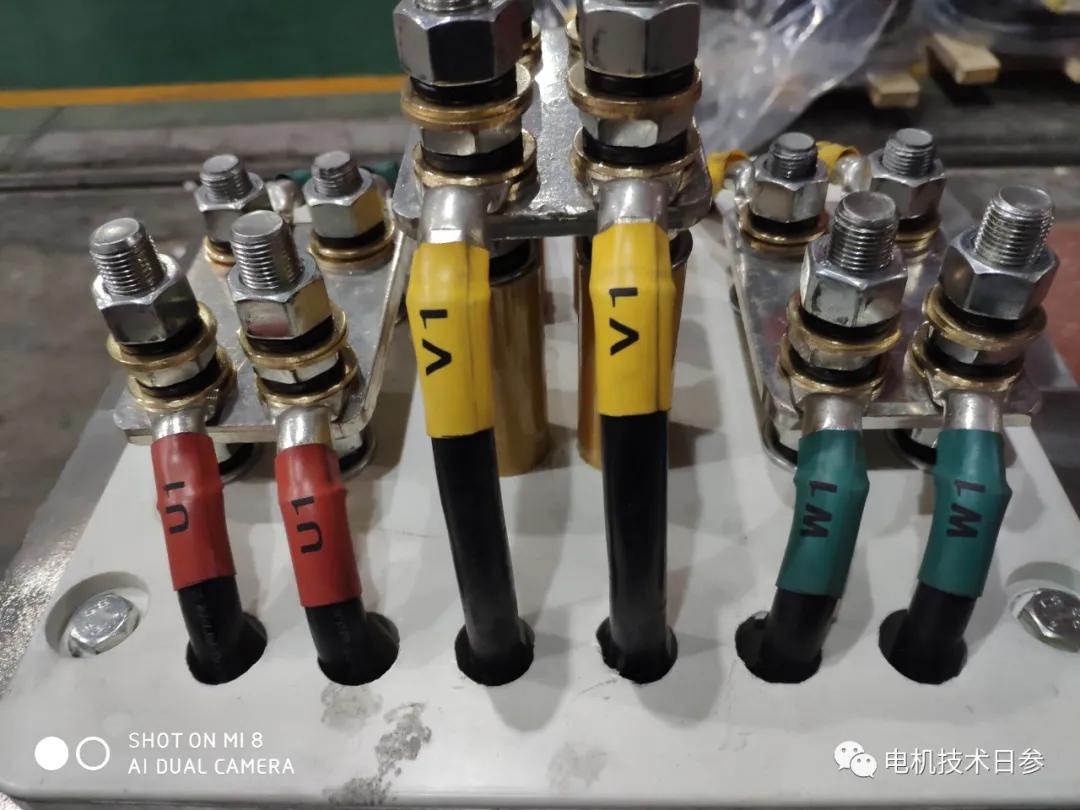 先從電機(jī)本體的引線電纜說(shuō)起,看看如何推導(dǎo)出各種復(fù)雜的問(wèn)題。三相繞組在每相的頭尾各有兩個(gè)頭,共六個(gè)頭,通過(guò)引線電纜連接到具有內(nèi)接外接功能的接線裝置(多為接線板結(jié)構(gòu)),真的不復(fù)雜。然而,對(duì)于低壓和大功率電機(jī),電流非常大。為了連接、引出和固定,每相至少要并聯(lián)三四根電纜和幾十根粗細(xì)合適的電纜,以解決生產(chǎn)加工過(guò)程中的工藝問(wèn)題。同時(shí)連接的數(shù)字電纜太多,衍生出不同類(lèi)型的接線板或接線裝置,接線裝置上必須設(shè)置相應(yīng)數(shù)量的端子或端子。至少對(duì)應(yīng)三根或四根內(nèi)部電纜(部分為并聯(lián))的用戶(hù)端是否必須匹配相同數(shù)量的外部電纜?顯然,客戶(hù)不會(huì)容忍電纜數(shù)量近乎密集的并聯(lián)方式,必須在接線板或接線裝置上設(shè)置集流條,以滿(mǎn)足客戶(hù)數(shù)量有限的外部電纜。安全的方法是通過(guò)與客戶(hù)溝通確定出線電纜的規(guī)格、型號(hào)和數(shù)量,在接線盒或接線裝置上設(shè)計(jì)合適數(shù)量和直徑的進(jìn)線孔,配置通孔直徑與出線電纜外徑相匹配的電纜連接器。接線板或接線裝置上的集電器配有專(zhuān)門(mén)用于客戶(hù)接線的接線板。