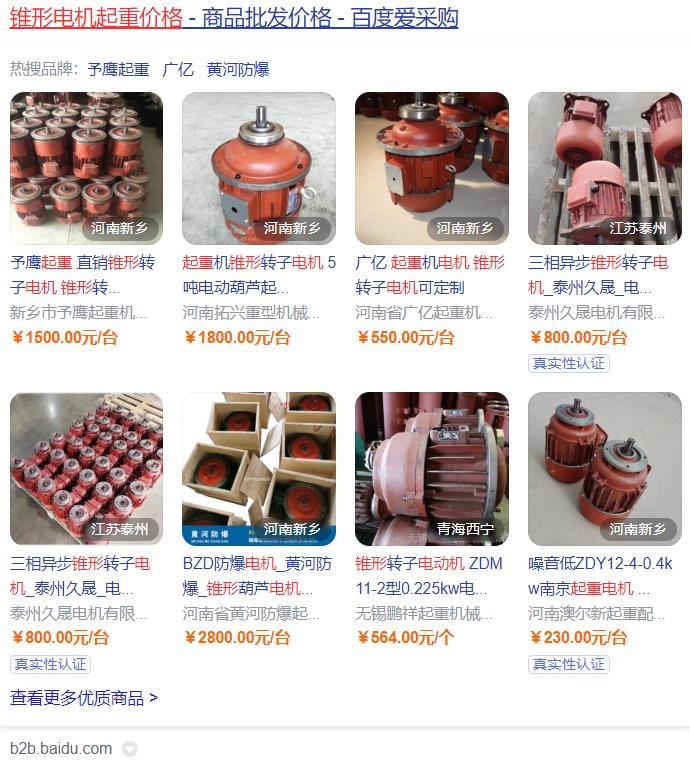 (百度愛采購搜索得出2021年錐形電機(jī)起重6O公斤22OV價(jià)格)