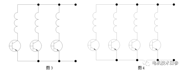 星形連接繞組是把所有相繞組線圈的首端或尾端連接在一起,與之相配合的電子換向電路可以是橋式線路,也可以是非橋式電路。圖1、圖2為星形繞組與橋式線路的組合,圖3、圖4為星形繞組與非橋式電路的組合。
