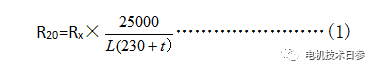 Rx—t℃時L長度電纜實測電阻值,單位為Ω: